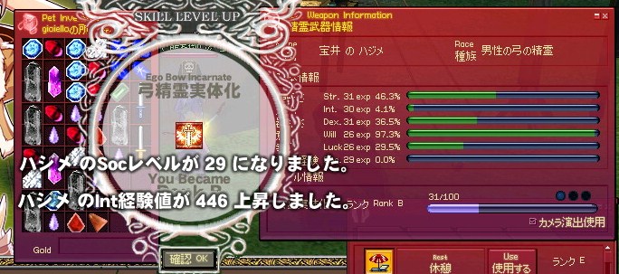 精霊のSOCが29になりますた。30までもーすこーし。精霊放置ばっかだな俺・・・