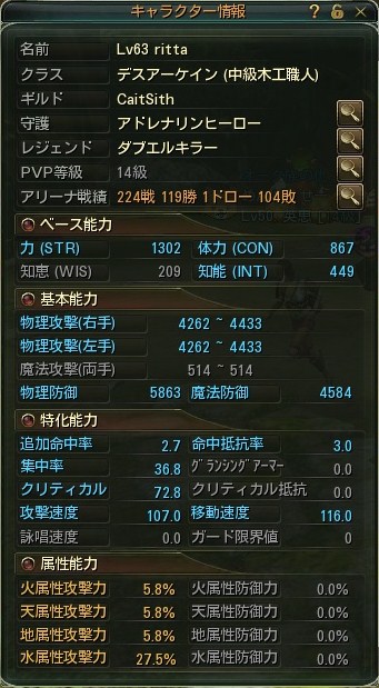 で、総合してステータスがこんな感じになりました